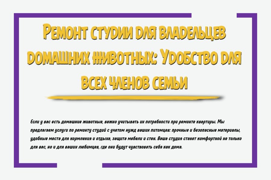 Когда в доме живут домашние животные, особенно в компактной студии, важно учитывать их потребности при ремонте и обустройстве интерьера. Создание удобного и функционального пространства, которое подходит для всех членов семьи, включая питомцев, требует особого подхода. Это касается выбора материалов, планировки и организации пространства, чтобы обеспечить комфорт и безопасность как для людей, так и для животных. Рассмотрим, как провести ремонт студии, учитывая интересы всех членов семьи.
